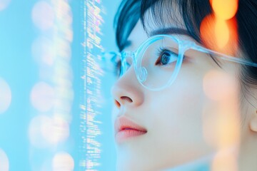 Focused Vision Young Asian Innovator in a Cyberpunk Digital Realm