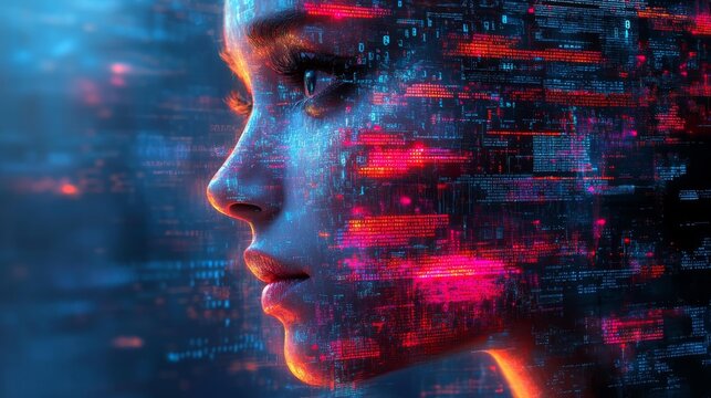 Futuristic Female Cyborg Interface with Digital Data Stream