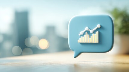 A modern chat icon featuring a graph, symbolizing analytics and communication in a business context, with a blurred city background.