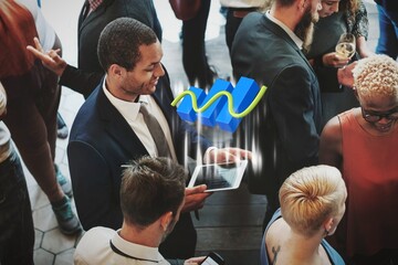 Colleagues discussing data trends with futuristic ar overlay in tech office