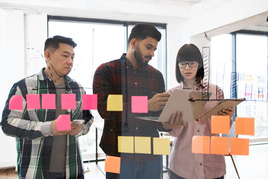 Tech Professionals Collaborating On Creative Project With Sticky Notes Images