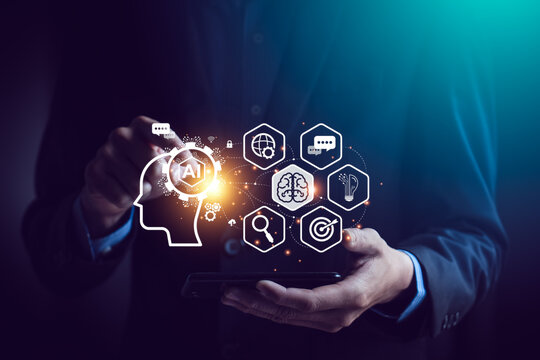 Chat with AI or Artificial Intelligence technology, business use AI smart technology by inputting, deep learning Neural networks to understand, respond to user inputs. future technology
