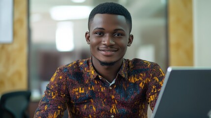 African Man Smiling at Computer