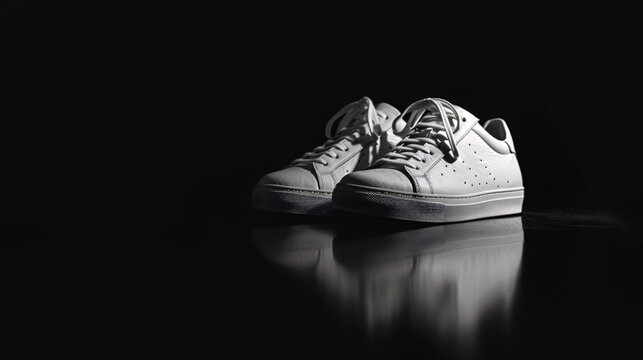 Futuristic sneakers with glowing soles in a vibrant urban night. Generative AI