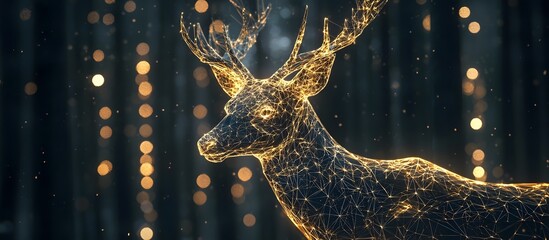 Digital golden reindeer. Technological Christmas design. Snowy background. Digital art style. Christmas technology concept. Advertising illustration. Copy space for product.