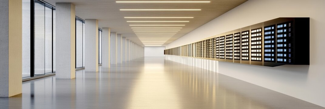 Elegant Digital security access panel next to rows of safe deposit boxes glowing in blue with high tech vibes in a modern bank vault