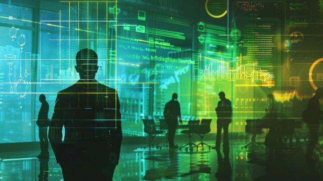 Futuristic Data Visualization Interface in a Tech Environment