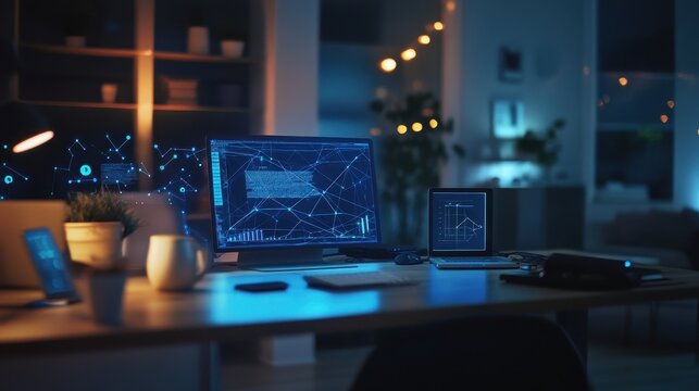 Tech Workspace With Virtual Graph Interface Images