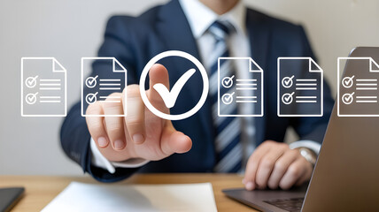 Business Professional Interacting with Virtual Checklist Interface