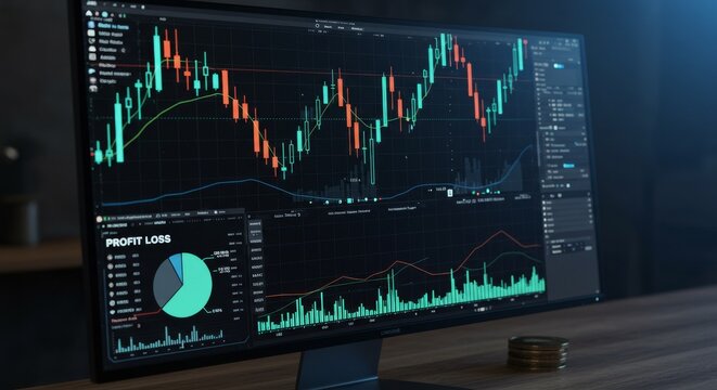 Business dashboard on desktop screen visualizing financial data with chart and graph for analytics insight and performance tracking in contemporary office setup