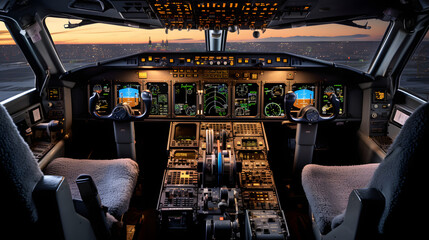 A modern office featuring multiple monitors displaying financial data, graphs, and charts, creating a sophisticated, technology-driven environment for data analysis and decision-making.