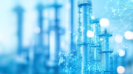 This digital concept shows an industrial facility's design with a warm gradient overlay and sketch aesthetics