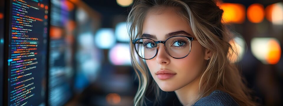 Female it professional supervising data encryption in modern server room