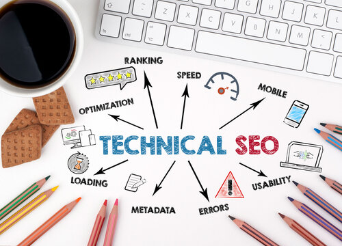 Technical SEO is shown using the text