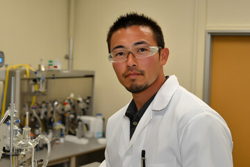 A laboratory technician preparing samples for analysis, with equipment and glassware around them. A technician in a lab setting.