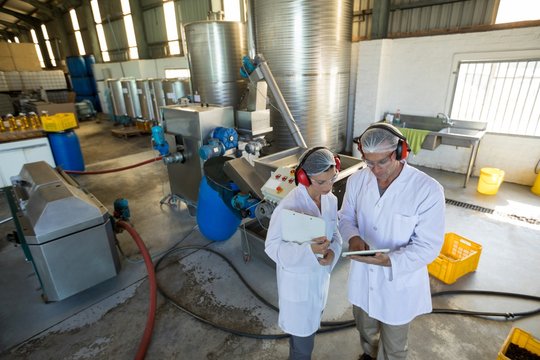 Industrial factory concept. Engineering with technician and worker operating and maintenance of machinery.