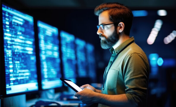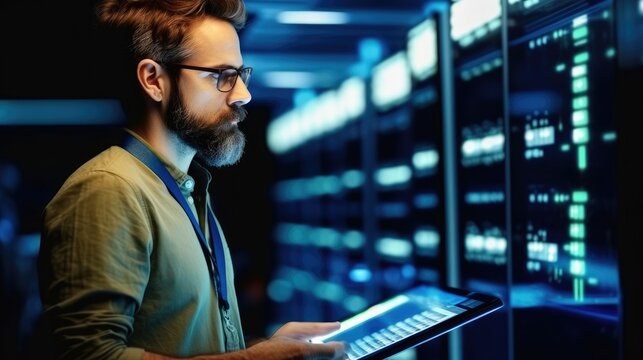 Technicians Analyzing Data Center Server Cabling On Site Images
