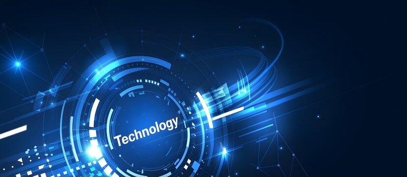 A futuristic blue technological background with glowing lights and abstract design elements
