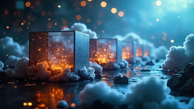 Futuristic data center with abstract technology overlay