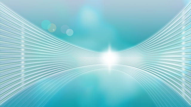 Abstract mirror background turquoise blue glowing sparkling pipes with a   place in the middle where you can put a product with backlight