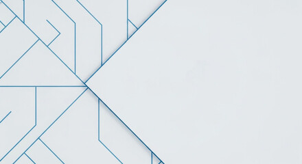 Minimalist technological background with blue circuit lines on a white surface. Abstract futuristic concept for science and innovation with copy space.