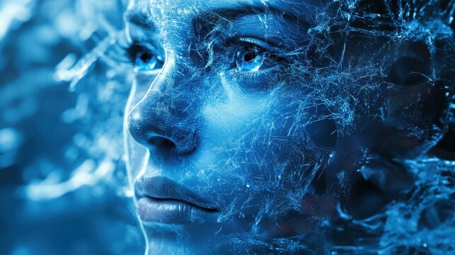 horizontal image of an abstract futuristic cyberspace blue transparent background Generative AI
