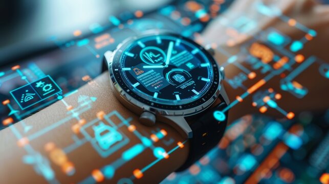 A person using a wearable biosensor to monitor health data in a modern technological environment