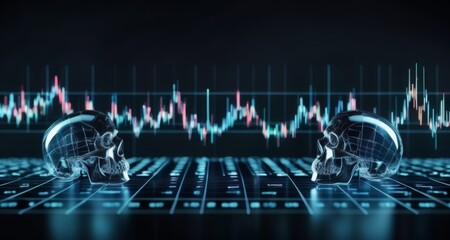 Digital data visualization with graphs and charts on dark grid background