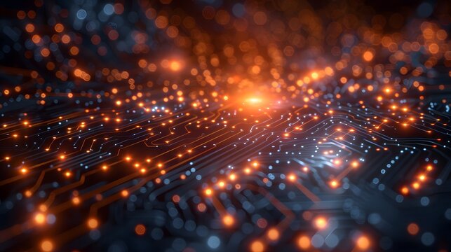 Futuristic digital interface with data visualization and circuitry