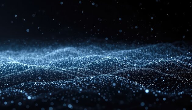 Abstract wavy surface of illuminated blue particles against a dark background, generating a sophisticated and technologically advanced feel