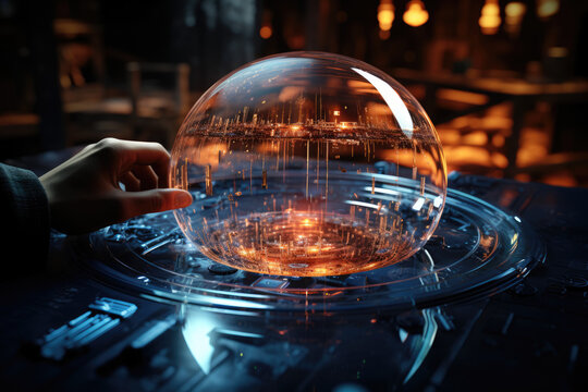 Abstract digital sphere with light bokeh effect
