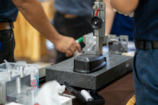 Senior technician holding gauge for precision measurement