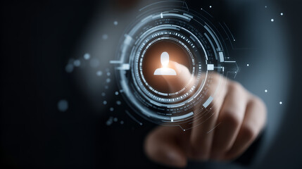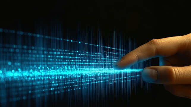 Touch of Tomorrow: A close-up view of a finger making contact with an intricate digital display, evoking a sense of technological innovation and futuristic interaction.