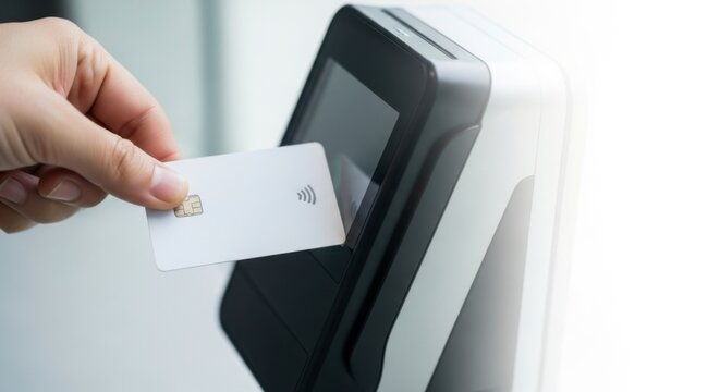 mobile payment security platform concept. A hand holding a smartphone displaying a fingerprint, symbolizing biometric security and technology integration.