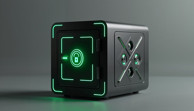 Digital shield lock symbolizing cybersecurity in futuristic style