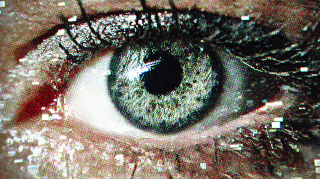 Test screen glitch texture with distorted lines and pixelated interference. Digital noise and screen errors create a retro-futuristic effect, evoking technology malfunction and electronic disruption.