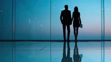 Business professionals collaborating on project in modern office environment