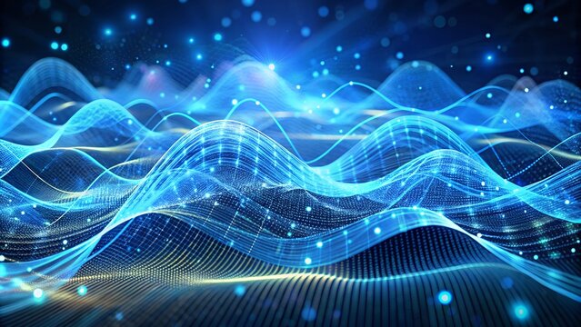 Holographic blue abstract technology data wavy lines