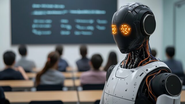 Robot demonstration in classroom educational setting technology presentation modern environment engaging viewpoint