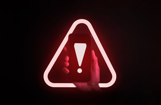 System warning error popup and maintenance on smartphone. cyber attack on online network error system. Cybersecurity vulnerability, data breach, illegal connection, compromised information.