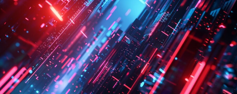 Circuit board close-up with blurred background lights creating a futuristic, techy atmosphere