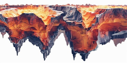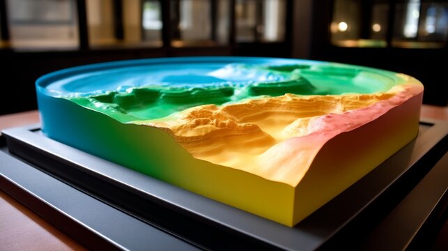 geology mineral tectonic concept. 3D topographic model showcasing mountains and water features in intricate detail.