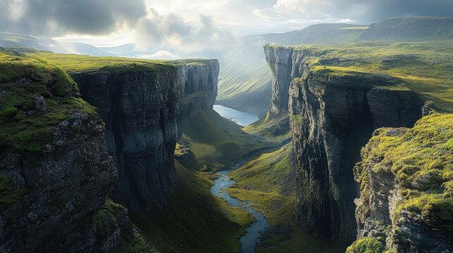 Panoramic view of a national park showcasing geological features and lush landscapes at the boundary of tectonic plates under a bright sky