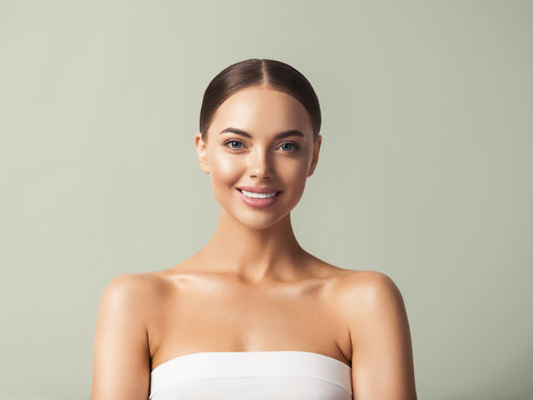 Smiling model portraying natural makeup elegance