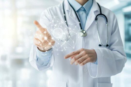 Doctor Interacting with Digital Medical Technology and Heartbeat Graph
