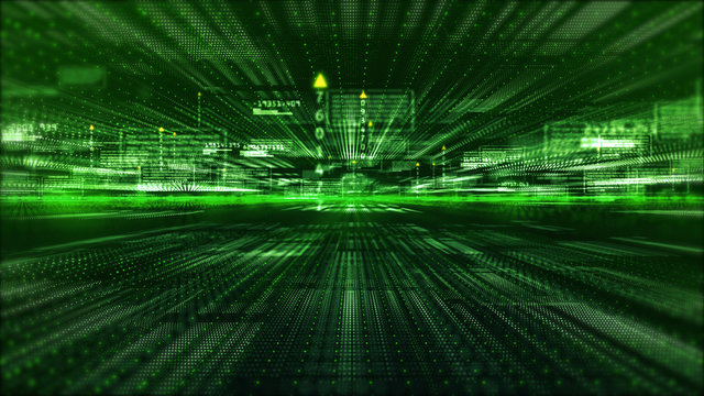 Converging numeric tunnel on 3d grid with glowing telemetry digits and blue perspective