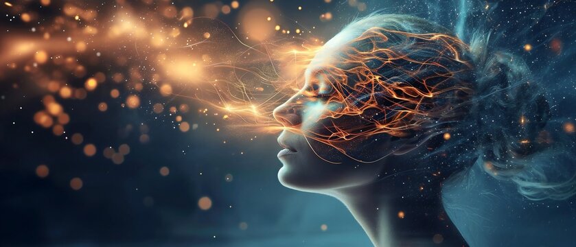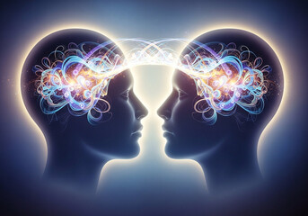 Cosmic telepathy visualization. Ethereal connection between twin spirits. Astral plane communication portraying universal consciousness and psychic bond for the background of abstract wallpaper