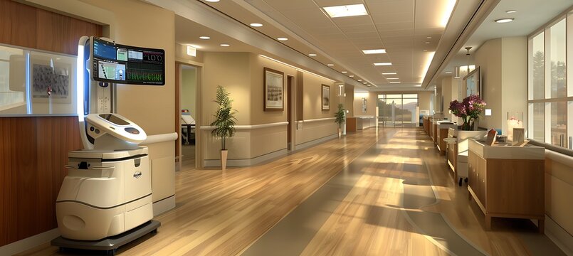 Robotic innovation in futuristic scientific corridor