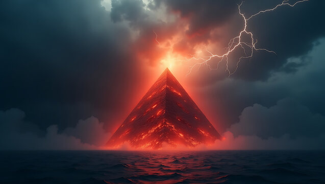 Dramatic dark clouds over a reflective surface, ominous atmosphere