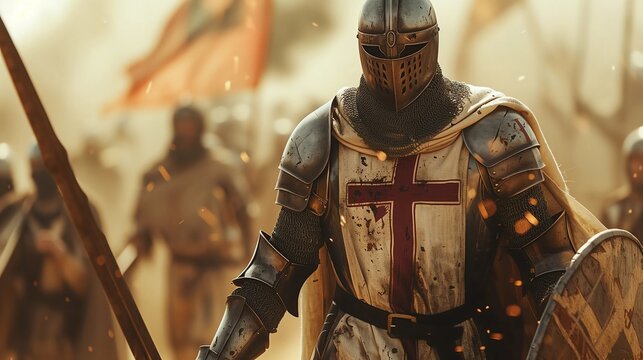 Knights Templar with armor and sword, history and war